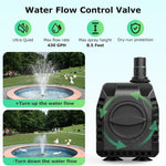 A: The pump delivers a maximum flow rate of 320GPH and can spray water up to 8.5 feet high, powered entirely by the sun for efficient and eco-friendly operation.