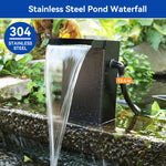 A: The waterfall spillway is constructed from premium 304 stainless steel, which is rust-resistant, weatherproof, and highly durable for long-term outdoor use.