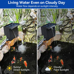 A: The height of the water flow is directly influenced by the intensity of sunlight. Stronger sunlight powers the solar pump more efficiently, increasing the height and power of the waterfall.