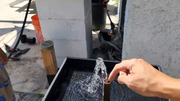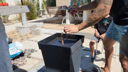- Pour a small amount of concrete around the mixing drum to prevent weeds from growing when water overflows and to make the water feature more stable.