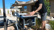 - Take the cutting board to the table saw and cut it to the measurements so that the cutting board fits snugly over the top of the mixing drum.
