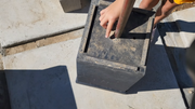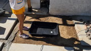- Carefully place the concrete mixing bucket into the pre-dug hole, adjust the position so that it is level, and press it firmly with your feet.