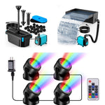 The 4′ x 4′ Pond Starter Kit is a complete pond solution combining a multi-stage filtration system, 304 stainless steel waterfall spillway, and RGB waterproof lighting. Perfect for koi ponds, backyard ponds, and DIY water gardens.